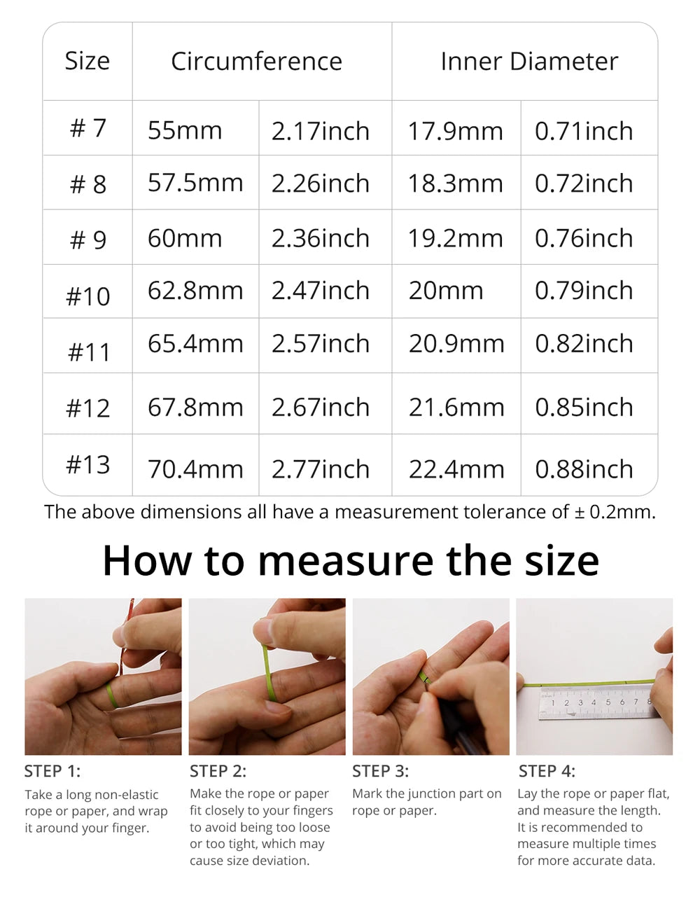 - Available Ring Sizes: 6, 7, 8, 9, 10, 11, 12, 13 (2mm increments)